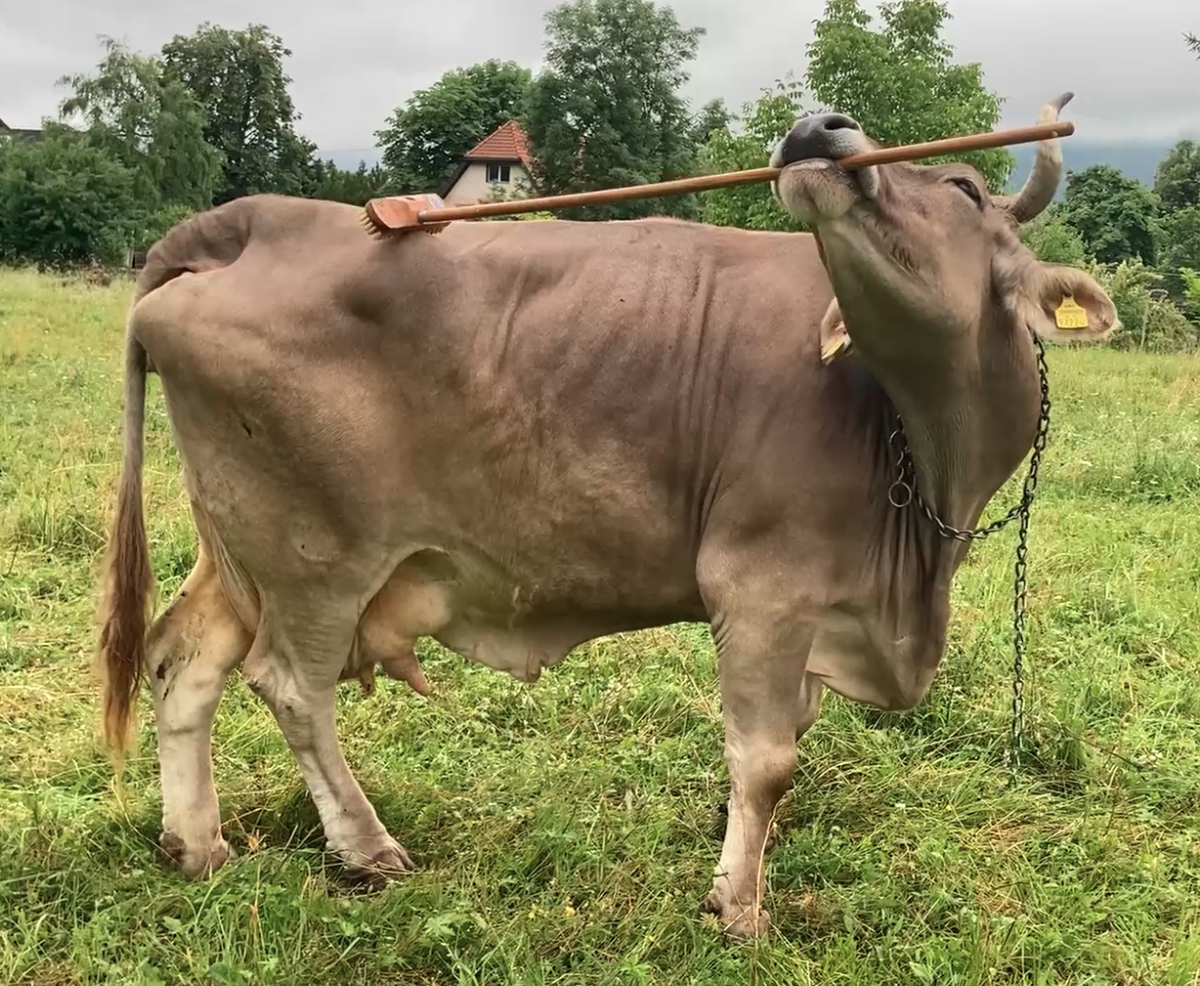 Para comprobarlo, se realizaron siete sesiones y se documentaron 76 ocasiones en las que la vaca manipuló el cepillo y decidió qué lado le convenía usar, ayudada por su boca y su lengua para levantarlo y girarlo. Así, logra elegir el extremo deseado y la posición necesaria. Se trata del primer caso registrado de uso flexible de herramientas en estos animales, lo que obliga a reevaluar su cognición.